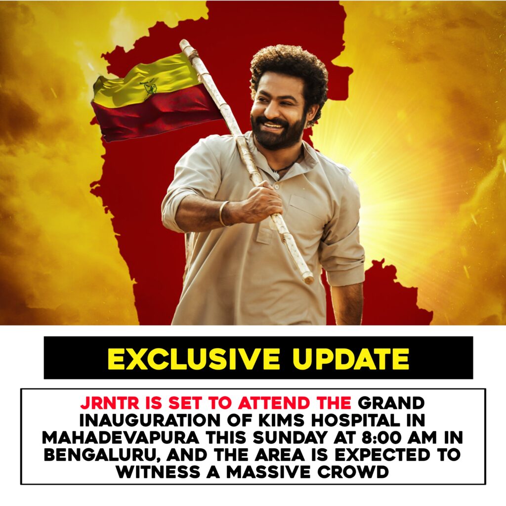 Popular actor Jr. NTR is set to attend the grand inauguration of KIMS Hospital in Mahadevapura, Bengaluru, this Sunday at 8:00 AM.