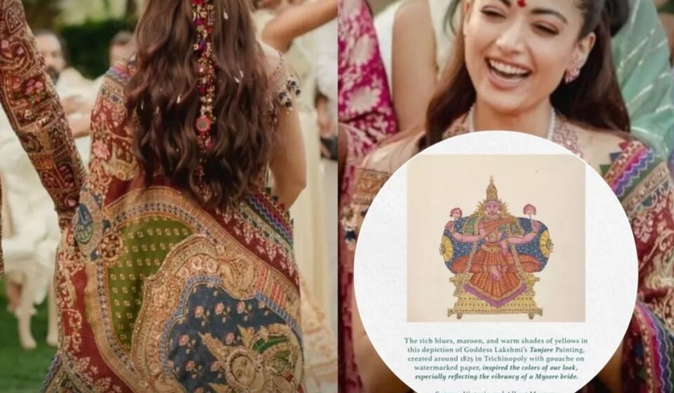 Rashmika’s Mehendi Saree Features Rare 1825 Tanjore Goddess Lakshmi Artwork