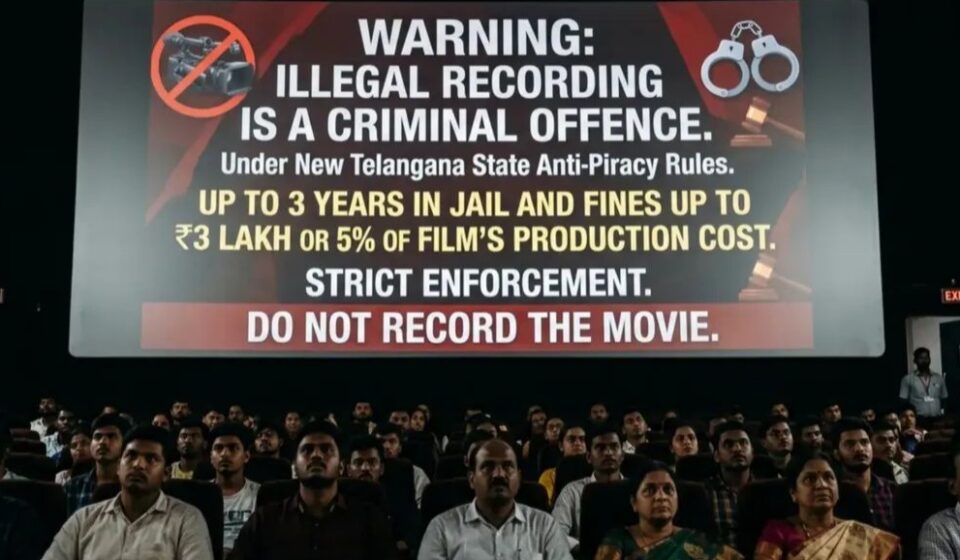 The Telangana government has introduced a strong new anti-piracy warning system in theatres, aiming to curb the growing issue of illegal movie recording. The announcement comes as part of stricter enforcement measures to protect the film industry from financial losses caused by piracy.