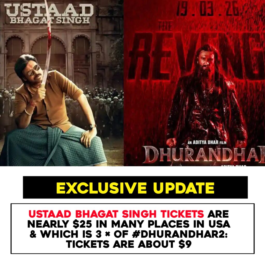 Interestingly, these ticket prices are significantly higher compared to Dhurandhar 2, where tickets are reportedly priced at around $9 in many theaters. This means Ustaad Bhagat Singh tickets are almost three times higher than those for Dhurandhar 2 in certain regions.